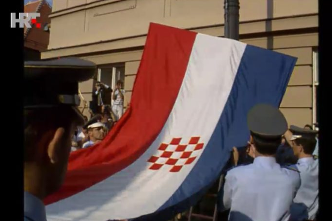 Gromoglasni pljesak okupljenih prolomio se Markovim trgom kada je policajac u hrvatskoj odori skinuo zastavu sa petokrakom i svečano podignuo prekrasnu hrvatsku zastavu sa povijesnim hrvatskim grbom. Srca Hrvata posvuda diljem svijeta bila su puna neopisive radosti jer je ovo bio trenutak koji su generacije čekale. Mnogi Hrvati su, naime, 45 godina trpjeli teške progone robije i progone zbog držanja hrvatskog grba ili izlaganja istog na javnim mjestima ili vjenčanjima.