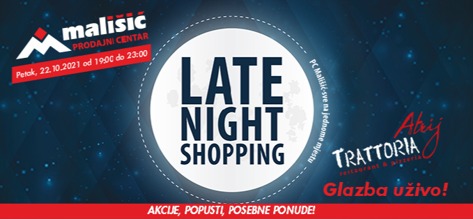 Prigodu za odličnu kupovinu donosi vam još jedan Late night shopping u prodajnom centru Mališić Međugorje u petak,22.10.od 19:00 -23:00 sati.