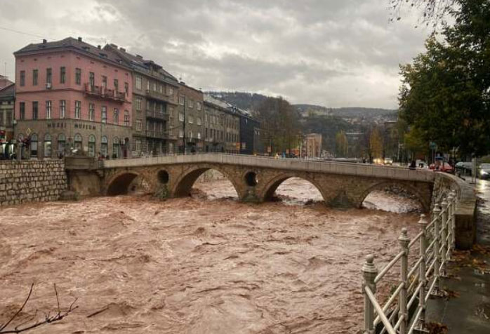 Kiša koja pada već dva dana prouzrokovala je poplave u Bosni i Hercegovini, a vodostaj Miljacke u Sarajevu ubrzano raste.