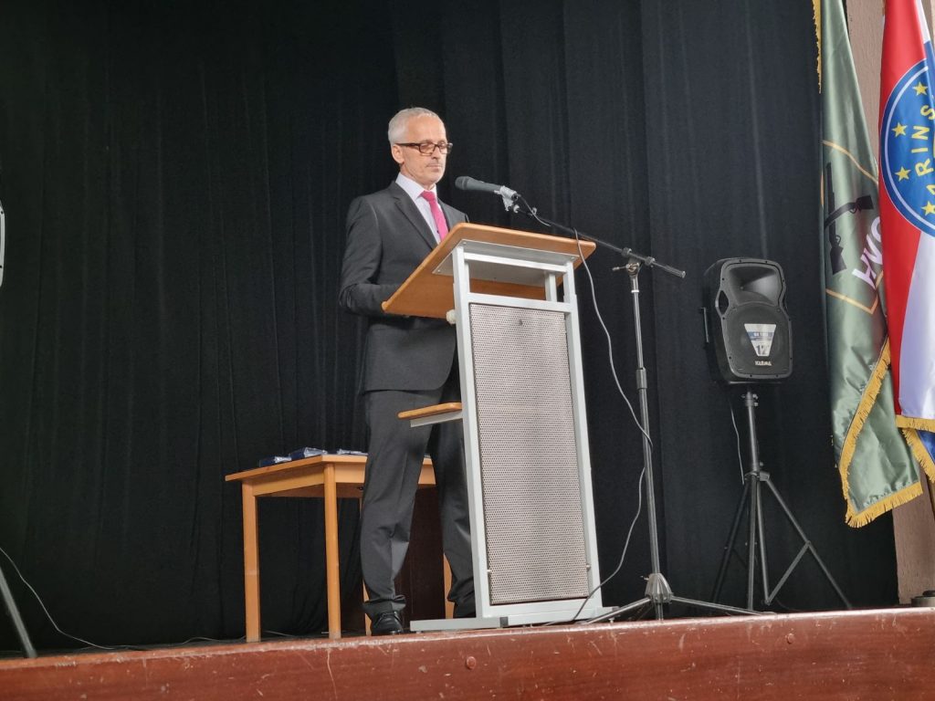 Na svečanoj akademiji upriličenoj u Domu kulture na Husinu  nazočnima se obratio ratni zapovjednik brigade Zvonko Jurić.