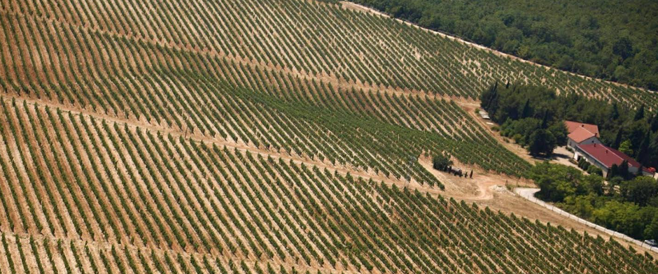 Vlastiti plantažni vinogradi prostiru se na oko 250 ha na pet vinogradarskih položaja, a posađeni su uglavnom autohtoni i udomaćeni kultivari: žilavka, blatina, trnjak, plavac mali i vranac. Vinarija je podigla i nasade priznatih svjetskih kultivara: cabernet sauvignona, merlota, syraha, sauvignon blanca i chardonnaya.