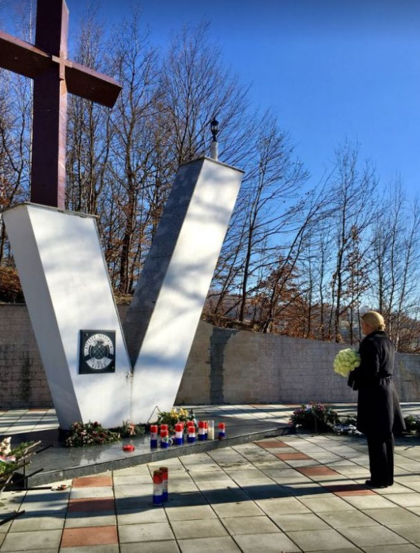 Grabar-Kitarović je također danas posjetila i Križančevo Selo kod Viteza u kojem su 22. i 23. decembra 1993. godine, pripadnici Armije RBiH ubili znatan broj vojnika HVO-a i hrvatskih civila te spalili selo.“