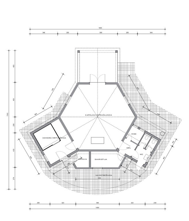 Građevinu mrtvačnice čine prostori u funkciji pogreba (dvorana za ispraćaj i odarnica), te prostorije za zbrinjavanje pokojnika ( doprema, čuvanje, prostorije za osoblje i pomoćne prostorije).