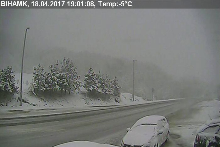 Snijeg povremeno pada na dionicama u višim predjelima, a na prijevojima Komar (Travnik-Donji Vakuf), Koprivnica (Bugojno-Kupres) i Makljen (Prozor-Gornji Vakuf/Uskoplje).