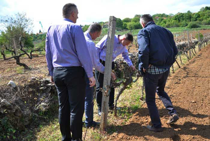 Ministar poljoprivrede, vodoprivrede i šumarstava HNŽ Donko Jović danas je s načelnikom općine Čitluk Marinom Radišićem, predsjednikom Općinskog vijeća Čitluk Predragom Smoljanom i njihovim suradnicima obišao nekoliko broćanskih vinograda i na terenu se uvjerio u razmjere štete nastale uslijed jako niskih temperatura koje su zabilježene krajem prošlog tjedna.