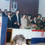 Plavi Podrum Čitluk, 29. travnja 1990. - Prisutnima se obraća Jozo Primorac, tadašnji povjerenik HDZ-a