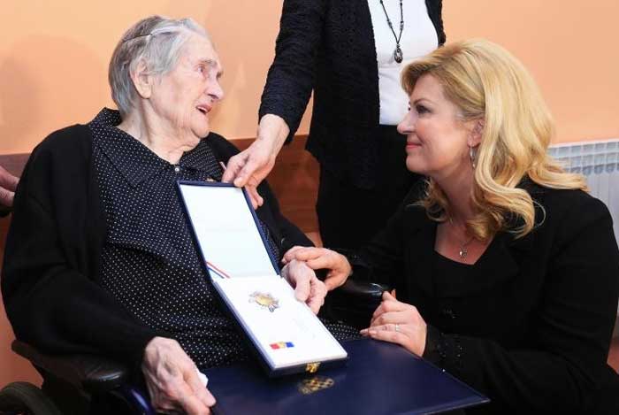 Predsjednica Kolinda Grabar-Kitarović posjetila je Dom za starije i nemoćne Vukovar te majci generala Blage Zadre, poginulog zapovjednika obrane Vukovara, 97-godišnjoj Milki Zadro, uručila odlikovanje Reda Danice hrvatske s likom Katarine Zrinske.