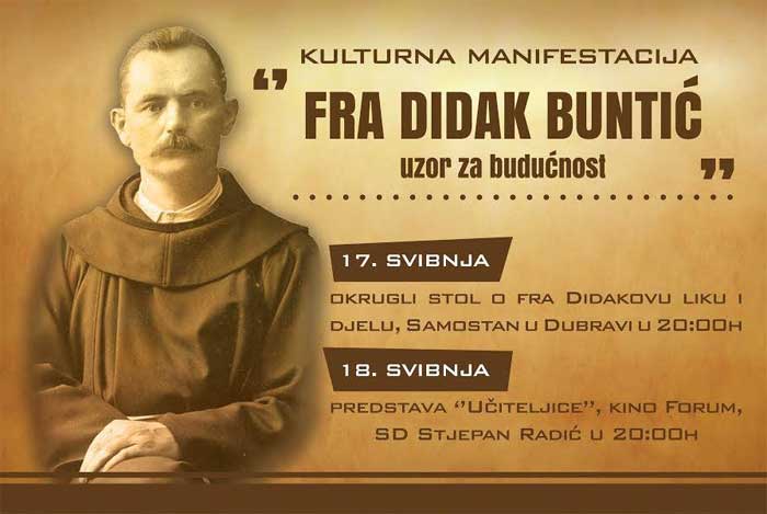 Zavičajni klub hercegovačkih studenata (ZKHS) u Zagrebu i Farma Dubrava organiziraju dvodnevnu kulturnu manifestaciju pod nazivom ”Fra Didak Buntić – uzor za budućnost”.