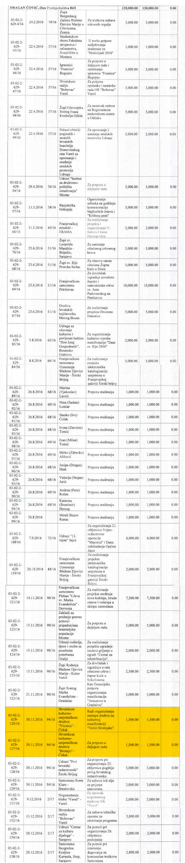 Hrvatski član predsjedništva BiH dr. Dragan Čović u protekloj 2016. godini iz sredstava proračunskih rezervi Predsjedništva BiH sa 120 tisuća KM pomogao je brojne udruge, župe, samostane, kulturne i sportske manifestacije, ali je dodijelio i 11 studentskih stipendija.