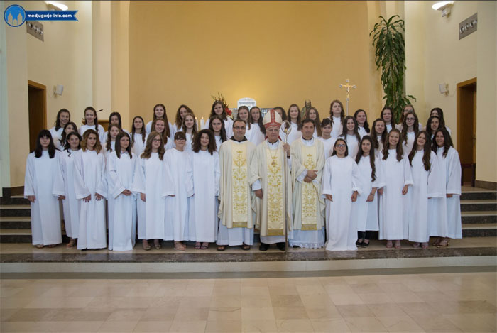 Na početku su biskupu riječi dobrodošlice uputila dva krizmanika i međugorski župnik fra Marinko Šakota. Međugorski fratri: fra Perica Ostojić, fra Vjekoslav Milićević i fra Zoran Pavičić pripremili su šezdeset i šest krizmanika, mladića i djevojaka iz međugorske župe kojima je na svečan način sakrament svete potvrde jučer podijeljen.