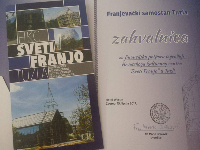 U zagrebačkom hotelu Westin, pod pokroviteljstvom predsjednice RH Kolinde Grabar-Kitarović, hrvatskog člana Predsjedništva BiH dr. Dragana Čovića i gradonačelnika Grada Zagreba Milana Bandića, održana je donatorska večer za završetak izgradnje Hrvatskog kulturnog centra “Sveti Franjo” u Tuzli.