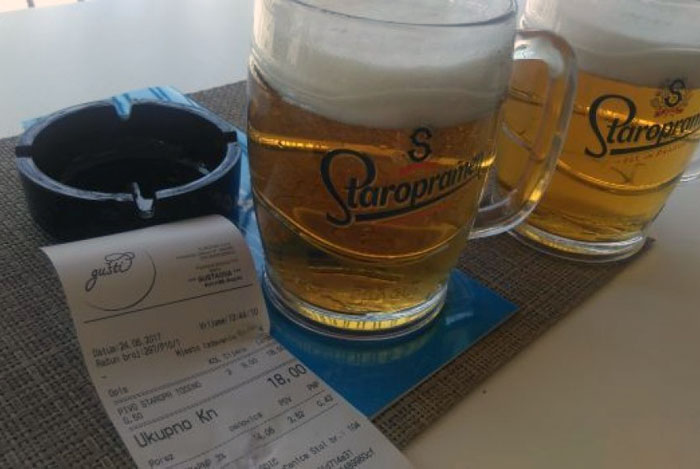 Na fotografiji koju nam je poslao vidljivo je da je dva puta po pola litre točenog piva platio 18 kuna, što je čak jeftinije nego u većini kafića na kontinentu. Osim toga, iz druge fotografije vidljivo je da sjedi u kafiću na samoj plaži, prenosi Index hr.