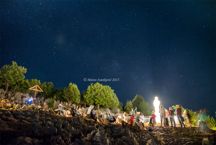 Za sve vas koji ste daleko od milosnog Brda Ukazanja, fotograf Mateo Ivanković napravio je nekoliko prelijepih noćnih fotografija na kojima je Gospin kip i plavi Križ u podnožju brda.