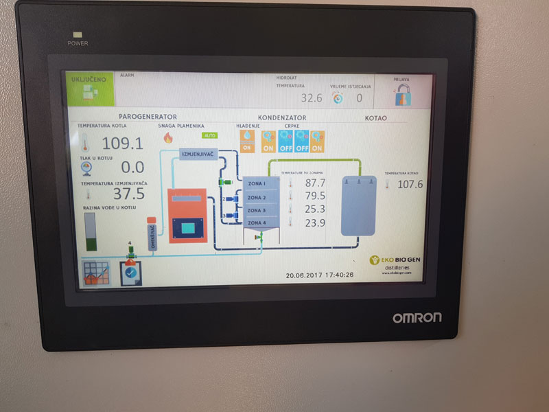 Radi se o niskotlačnom sustavi gdje radni tlak ne prelazi 0,1 bar, te temperatura pare ne prelazi 100 stupnjeva što omogućuje optimalnu destilaciju bez zagaranja zelene mase, uz mogućnost digitalnog nadzora svih parametara destilacije.