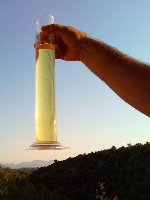 Nakon procesa destilacije Vaše ulje biti će isfiltrirano te zapakirano u staklenu ambalažu, uz koju ćete dobiti i bočicu od 5 ml za analizu