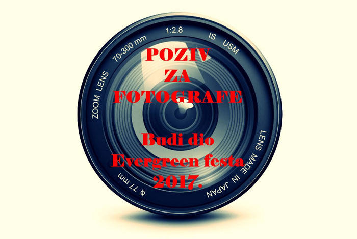 Obavijest svim zainteresiranim fotografima (profesionalnim i amaterskim) da se pridruže Evergreen festivalu 2017., te svojim fotografskim bilješkama podrže razvoj festivala. Poziv se odnosi na sve one koji su spremni družiti se, zabaviti i razigrati.