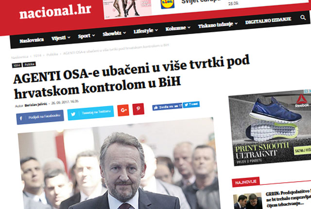 On otkriva kako su suradnici OSA-e, među ostalim, infiltrirani u više tvrtki pod hrvatskom kontrolom na području BiH i da tu agenciju informiraju o sadržaju poslovnih sastanaka kojima prisustvuju.