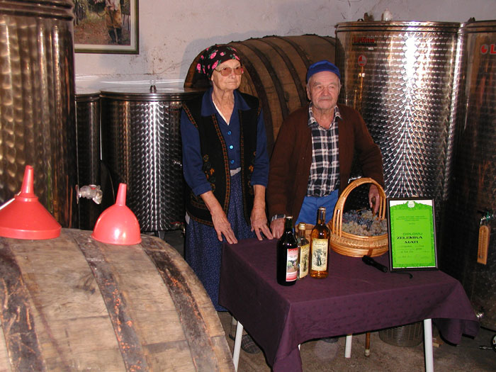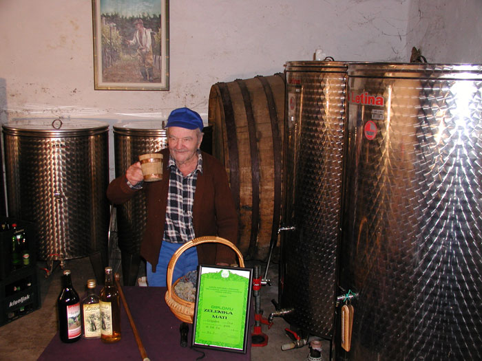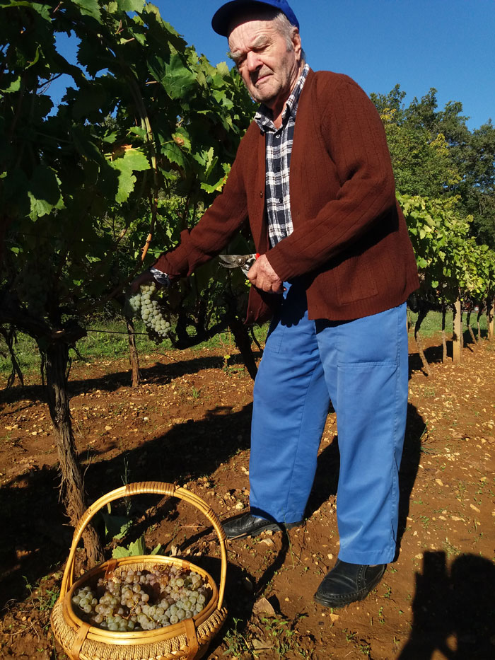 – Kad grožđe dobro uzrije grožđe, unda se bere, ujesen, ne smi se ljuto brat. Evo sad je vrime za to jer je grožđe zrilo i i puno sladora. U podrumu rade dica, ja sam to radio prije, sad ne mogu, samo pomognem. Prije su bačve bile drvene, sad je nova „moda“ i vino je čistije. A ja jopet mislim da bez drvenoga suda nema vina. Za dobro bijelo vino treba tri dijela grožđa žilavke kojoj se dodaju bena, podbil i krkošija i druge sosrte, a za crno vino najbolja je sorta grožđa blatina kojoj triba dodat vranca i kambuše.
