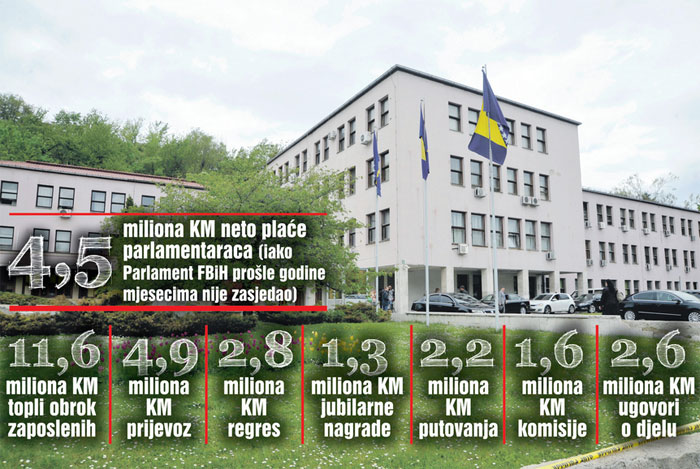 Oko 199 milijuna KM koštale su plaće i naknade zaposlenih iz 61 institucije koje se financiraju iz federalnog proračuna, a za političke stranke i koalicije u prošloj je godini izdvojeno je 3,6 milijuna KM.