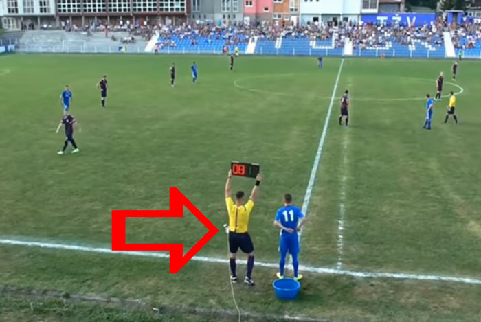 Naime, četvrti sudac imao je namjeru tribinama pokazati brojeve iduće izmjene igrača, a nakon što je semafor ostao bez baterije oduševio je okupljene velikom snalažljivošću, prenose Sportske novine.
