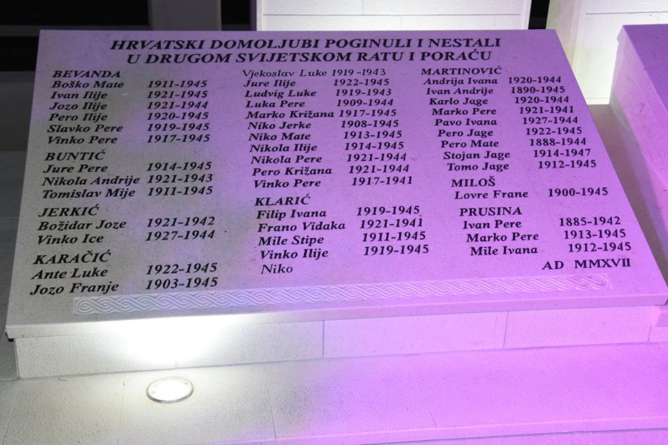 Imena i prezimena četrdeset žitelja mjesne zajednice Biletići u općini Čitluk koji su ubijeni, poginuli ili su nestali za vrijeme Drugog svjetskog rata i poraća ispisana su na lijepom spomen obilježju koje je večeras otkriveno i blagoslovljeno.
