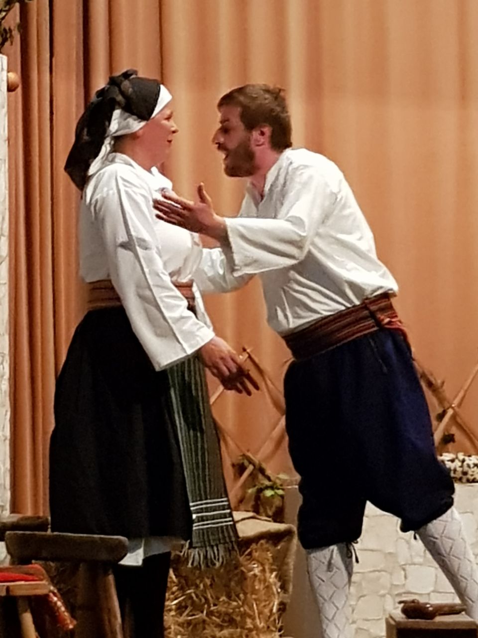 Za pripremu glumaca amatera je bio zadužen naš Brotnjak Ante Luburić koji ih je stručnim savjetima usmjeravao, a i sam je zaigrao u predstavi.