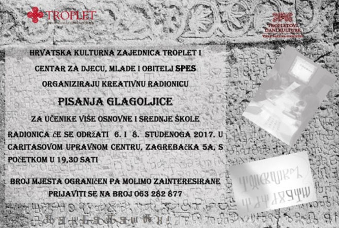 U suradnji s Centrom za djecu, mlade i obitelj SPES, država se kreativna radionica pisanja glagoljice za učenike viših razreda osnovnih škola i srednjoškolce.