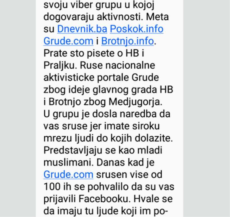 Uz Grude.com meta napada su portali Dnevnik.ba i Poskok.info koji je doslovno ugašen te Brotnjo.info. Svi portali meta su zbog hrvatskog aktivizma i objavljivanja istine koju sarajevski mediji ne žele prihvatiti. Istina je da ni ostali portali koji djeluju u hrvatskom korpusu u BiH ne zaostaju u objavi vijesti, ali neki su označeni kao prijetnja, što članovi različitih paraorganizacija vješto koriste.
