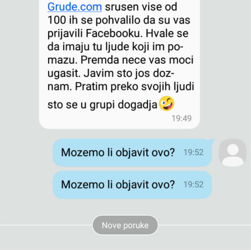 Uskoro je Facebook obavijestio urednike stranice Grude.com da je ona ugašena i to zbog dvije sporne vijesti. Zbog okupljanja i svete mise za generala Slobodana Praljka u njegovoj Čapljini i pjesme Marka Čolaka o generalu Slobodanu Praljku. Stranica je, kao što vidite, vraćena, ali onda smo krenuli u istragu što se točno dogodilo sa stranicom.