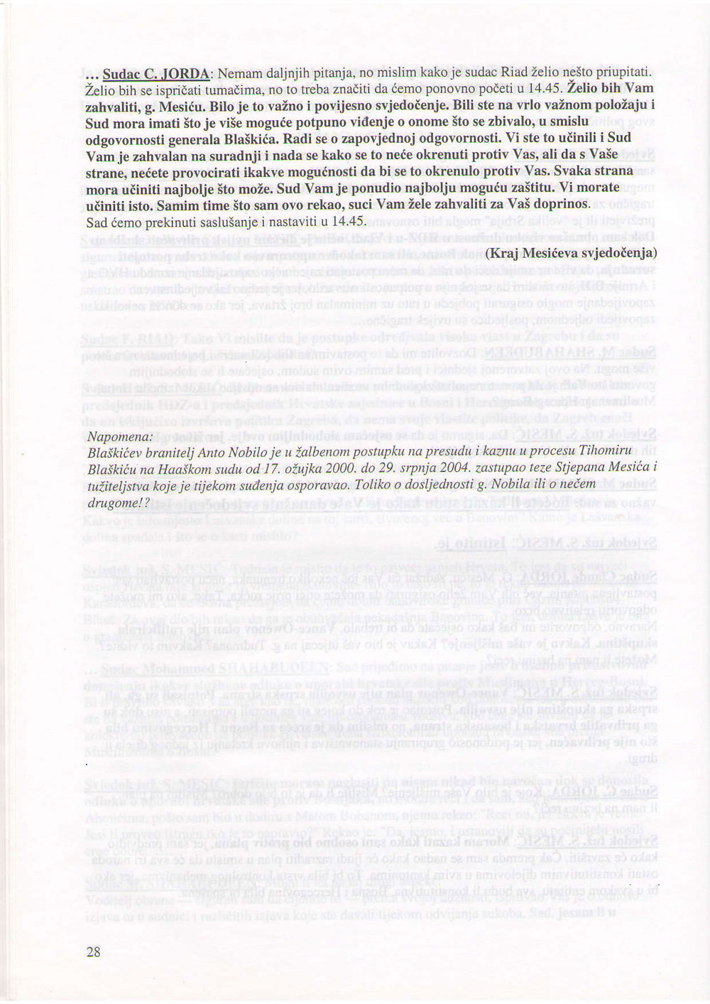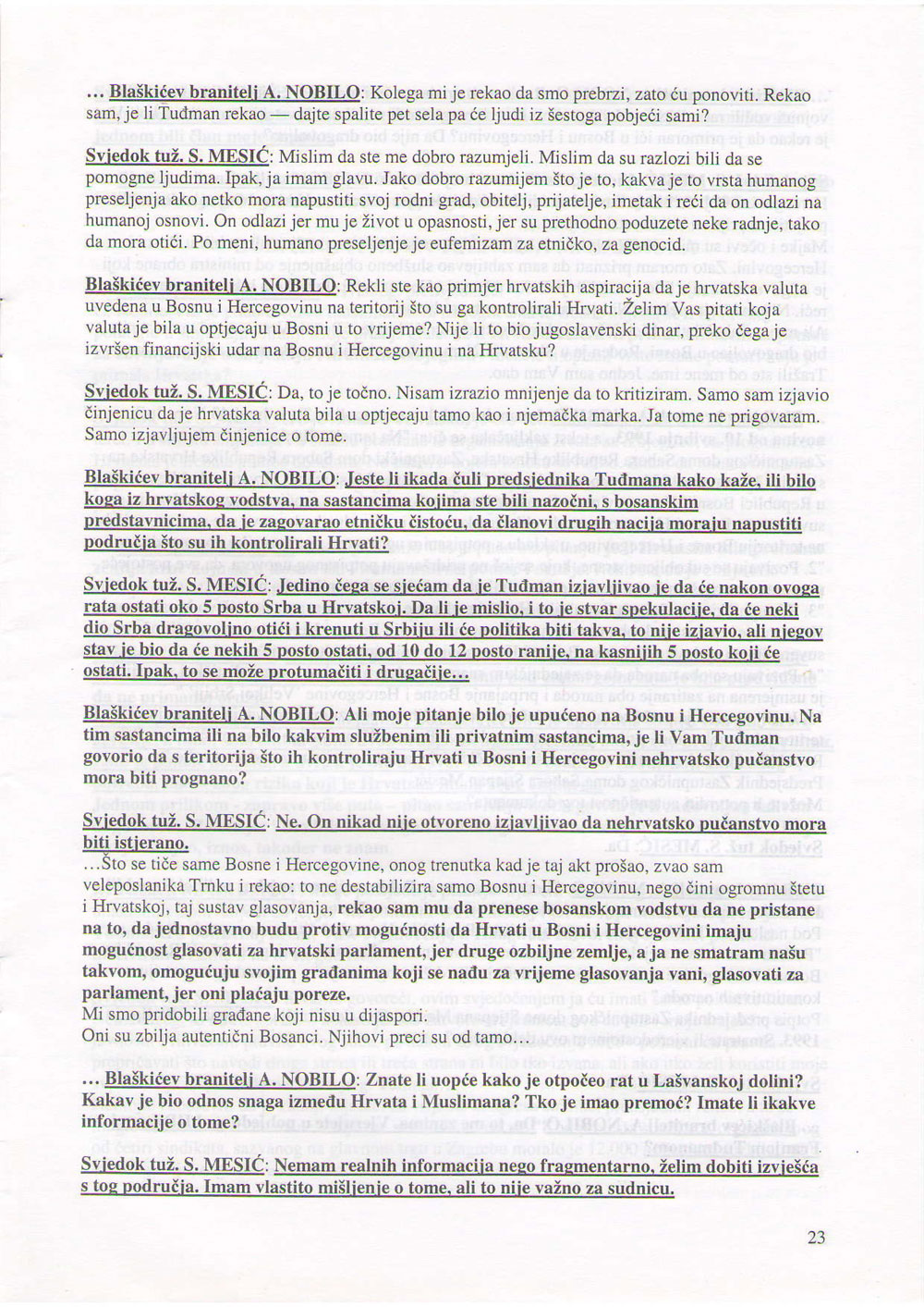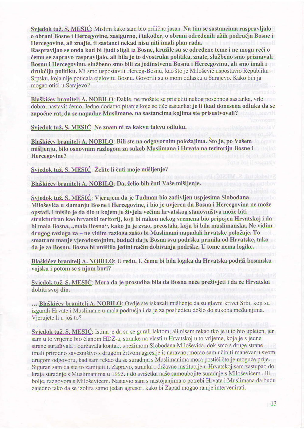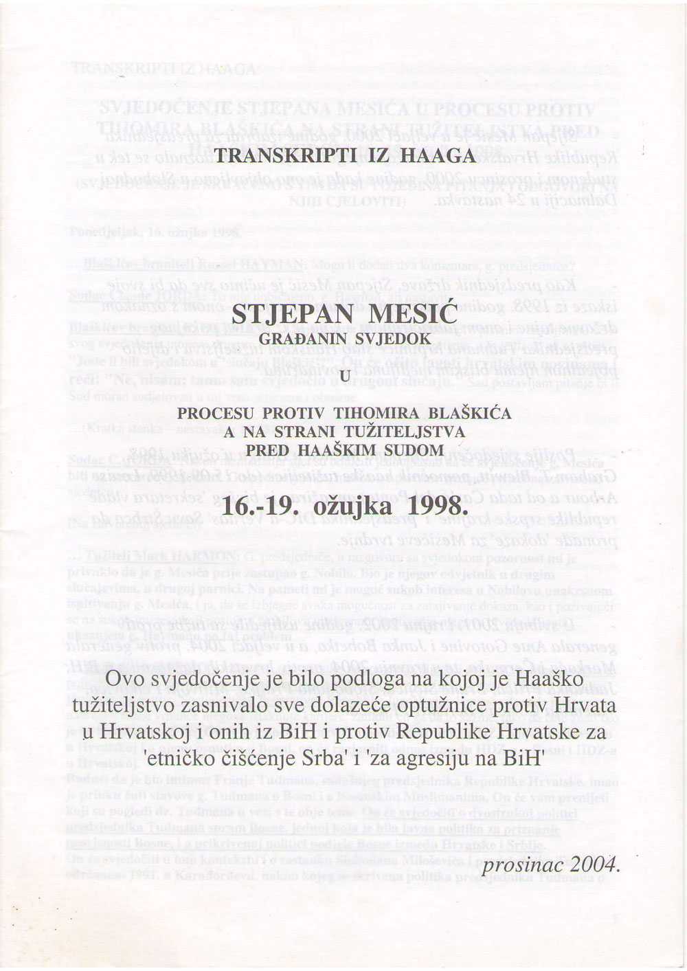 Ovo svjedočenje Stipe Mesića iz 1998. godine u procesu protiv Tihomira Blaškića, je bilo podloga na kojoj je haško tužiteljstvo zasnovalo sve dolazeće optužnice protiv Hrvata u Hrvatskoj i u BiH.