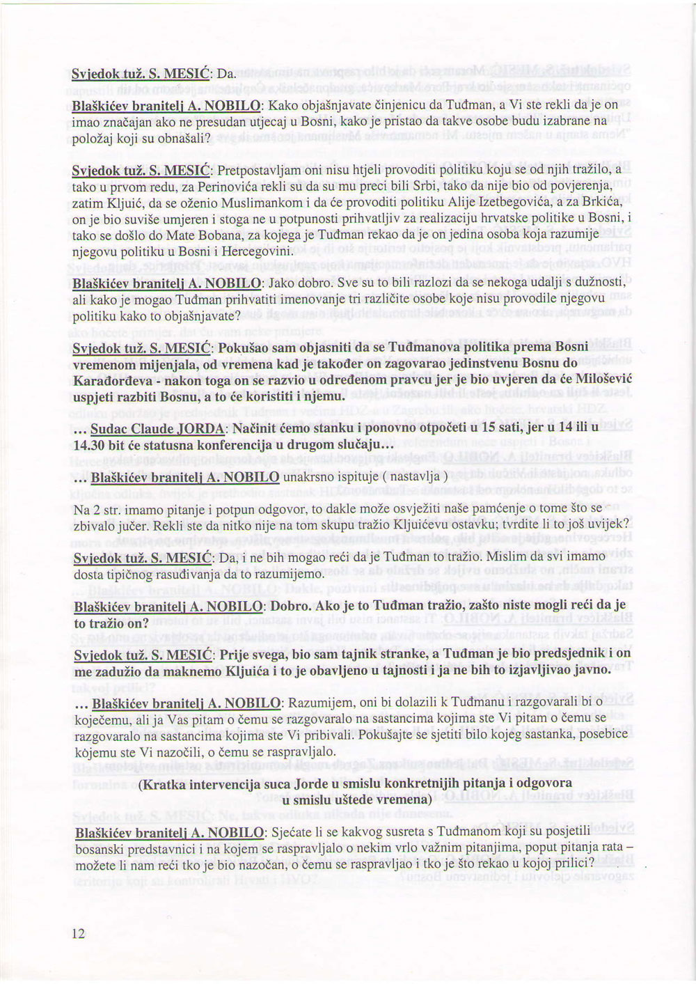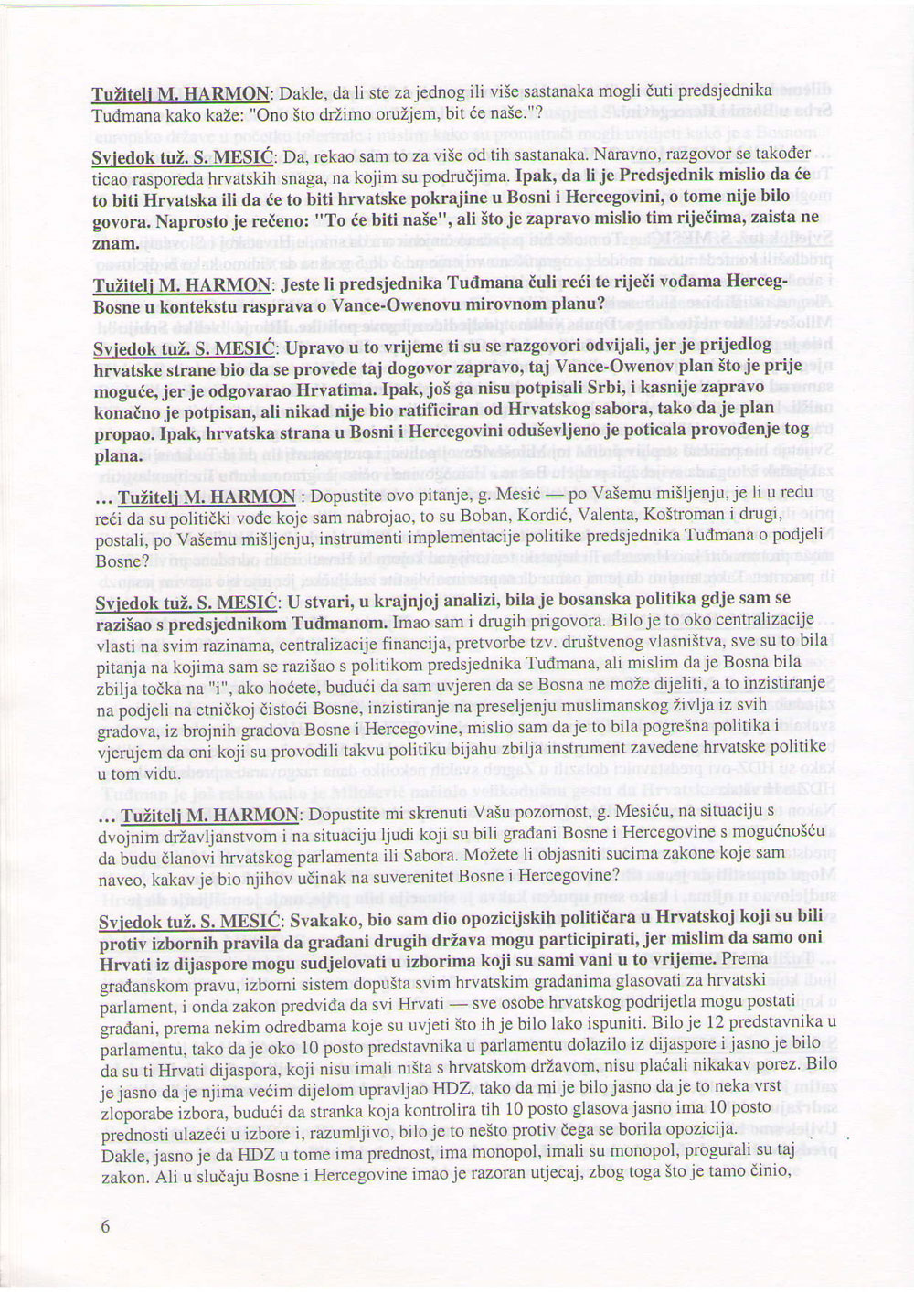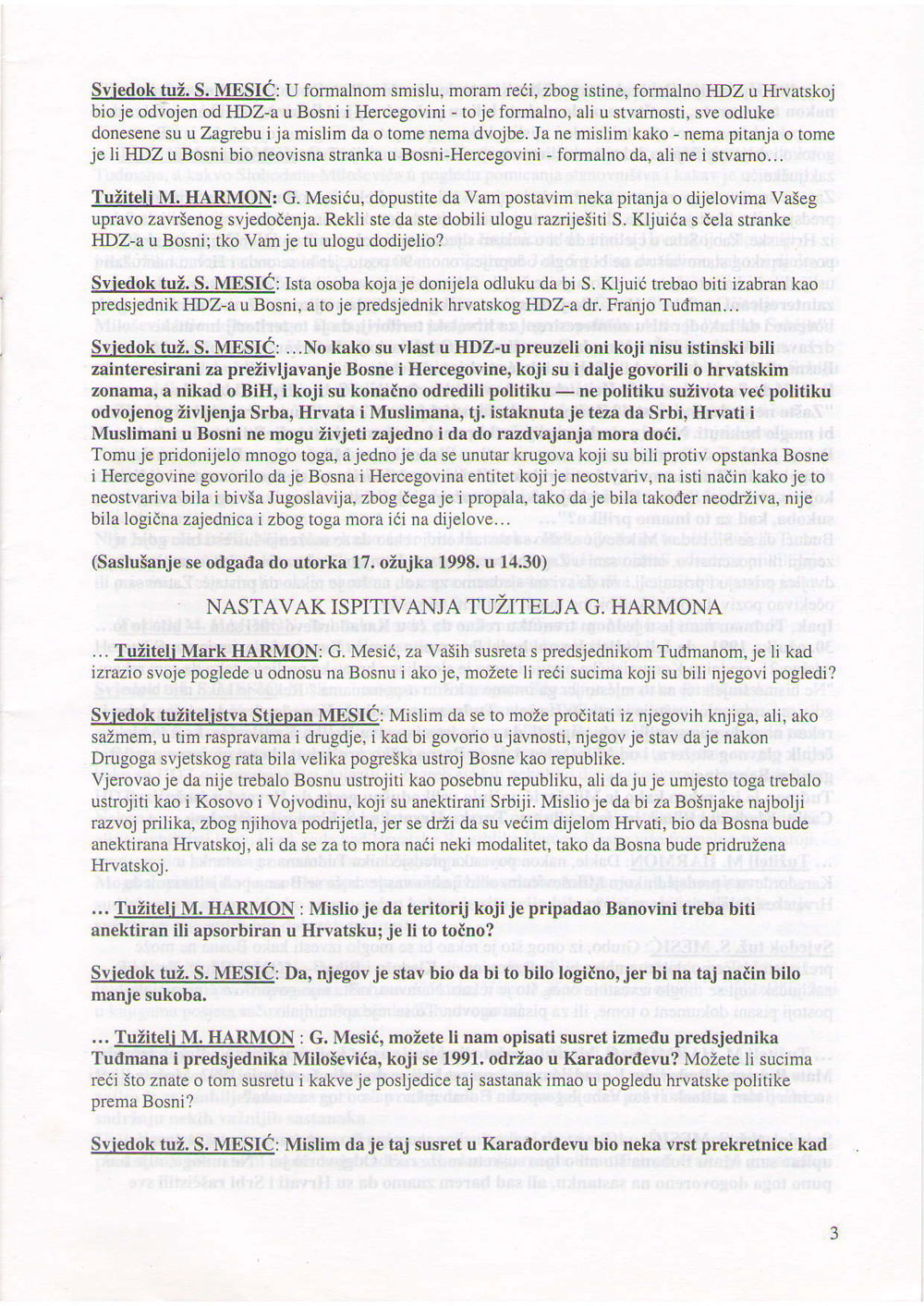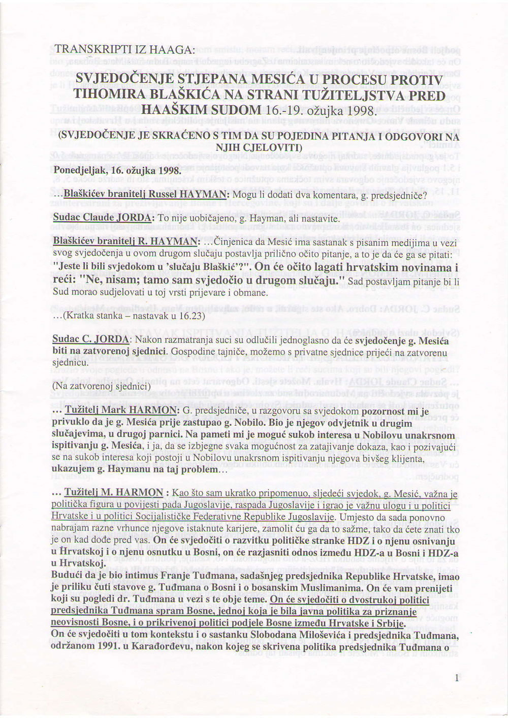 U nastavku donosimo transkript u kojemu Mesić tereti cijeli državni vrh Republike Hrvatske, Hrvate u BiH, a rezultat svega toga je bila presuda Herceg Bosni.