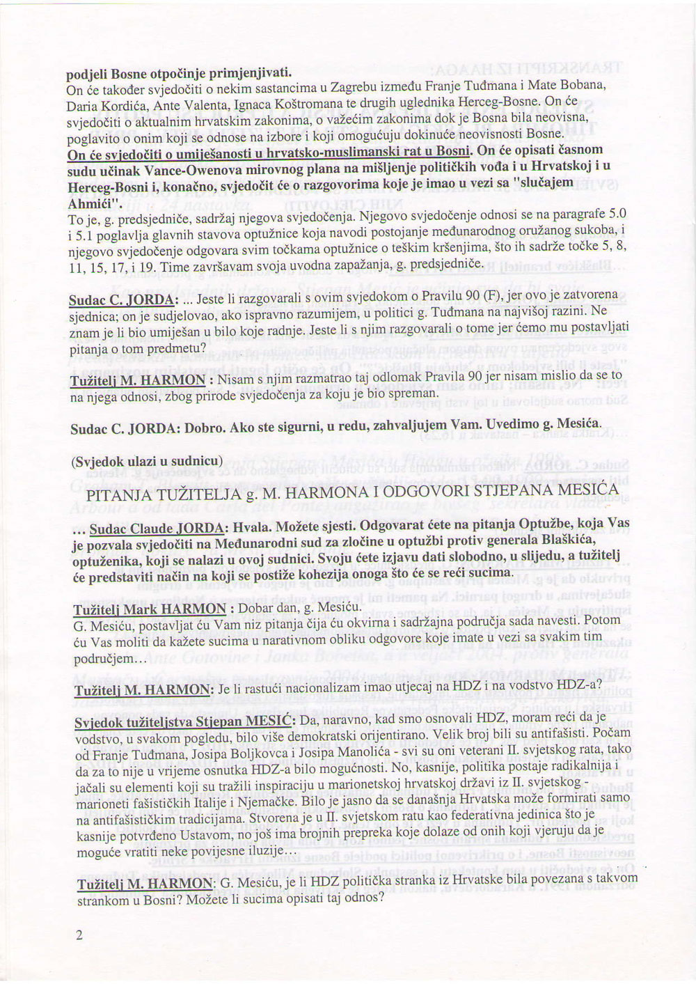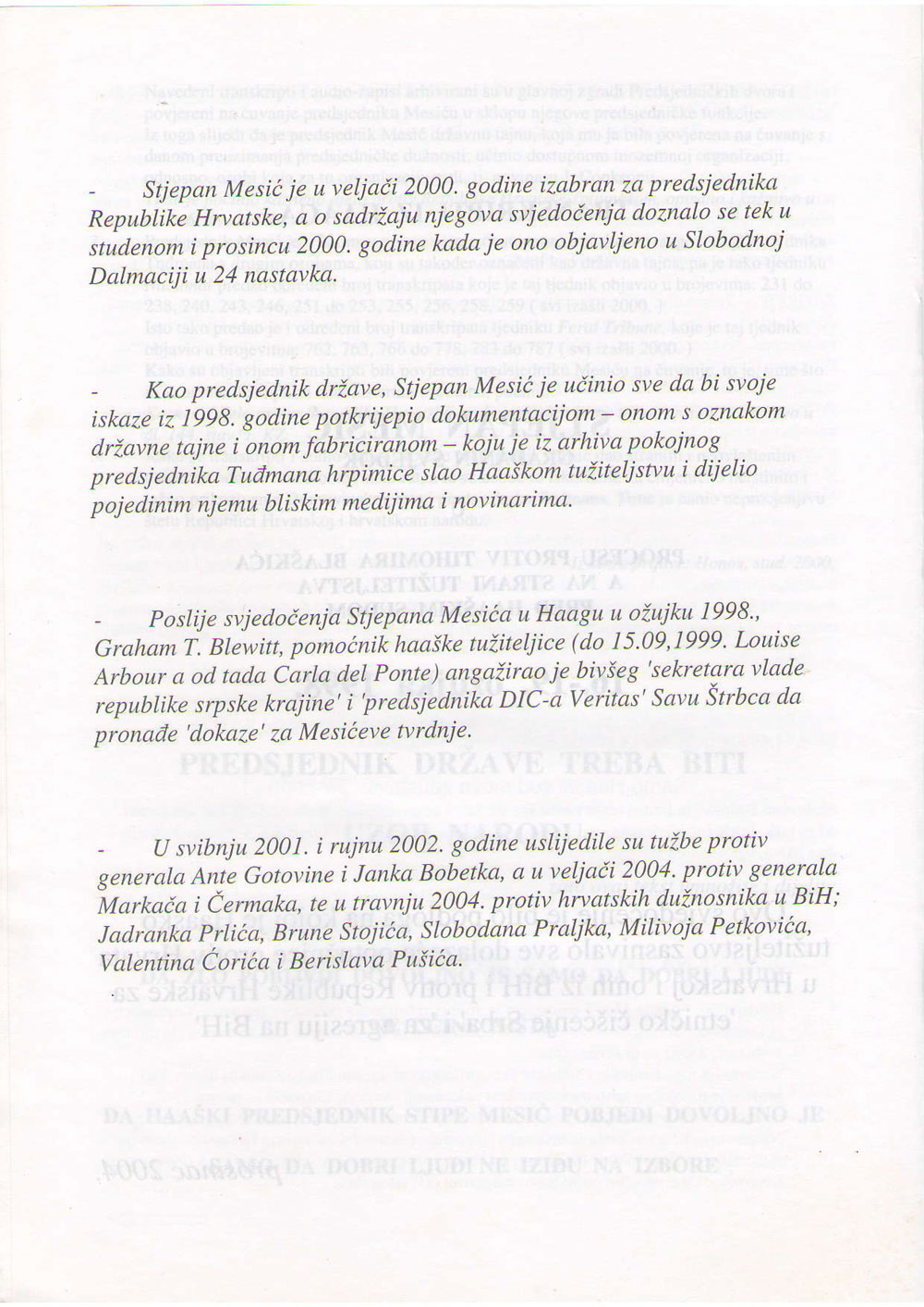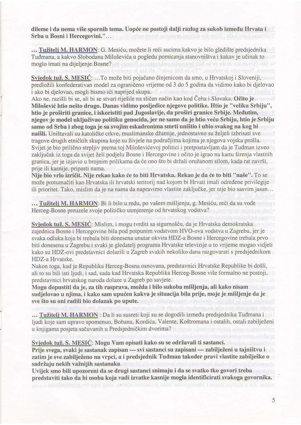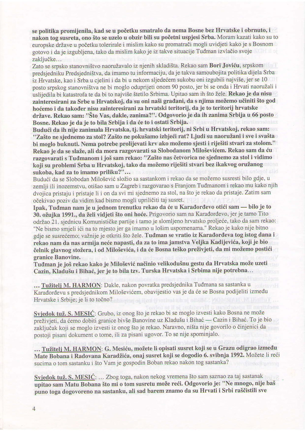 U nastavku donosimo transkript u kojemu Mesić tereti cijeli državni vrh Republike Hrvatske, Hrvate u BiH, a rezultat svega toga je bila presuda Herceg Bosni.