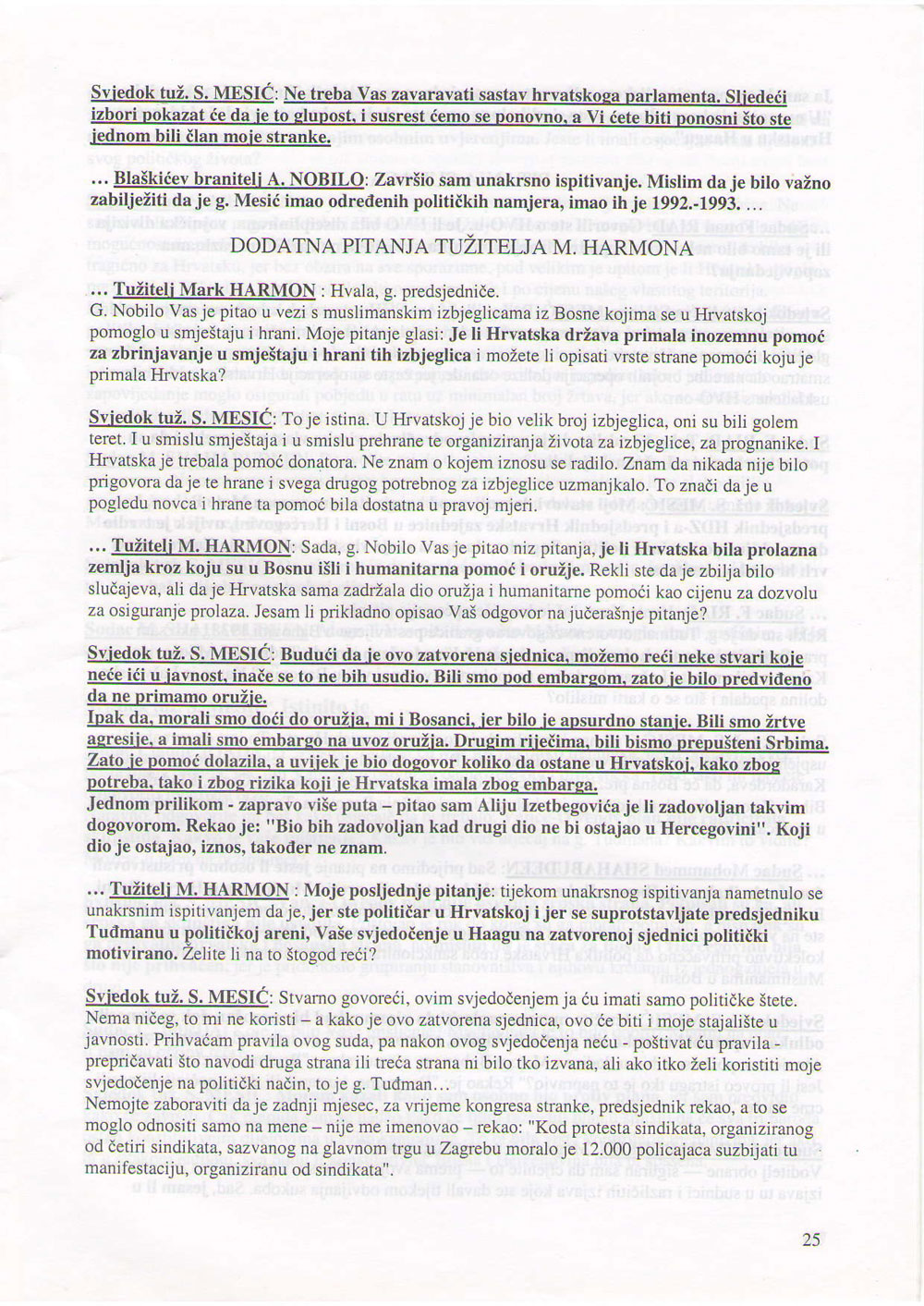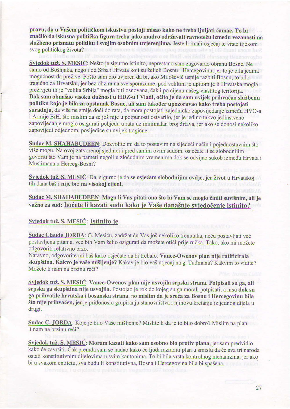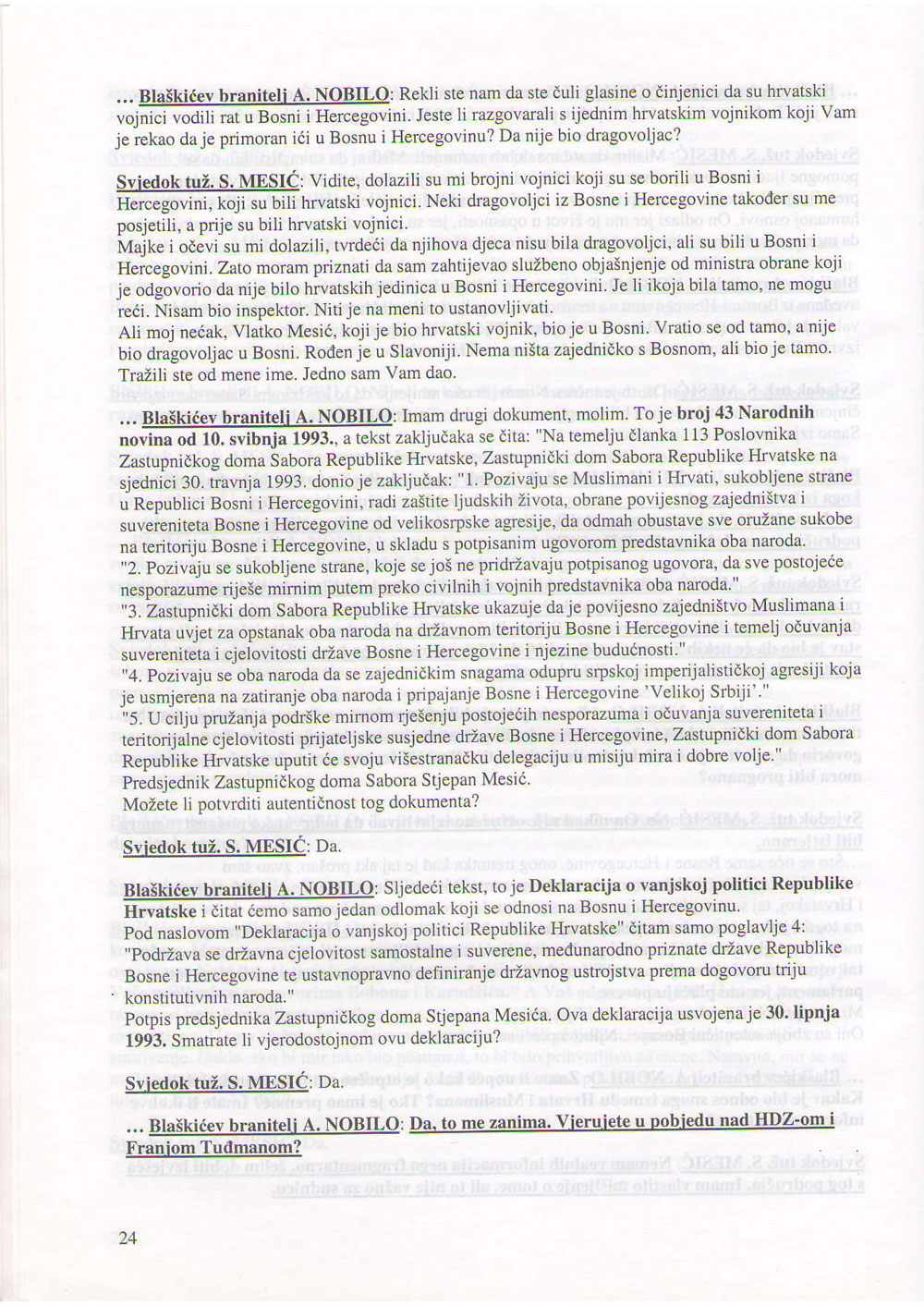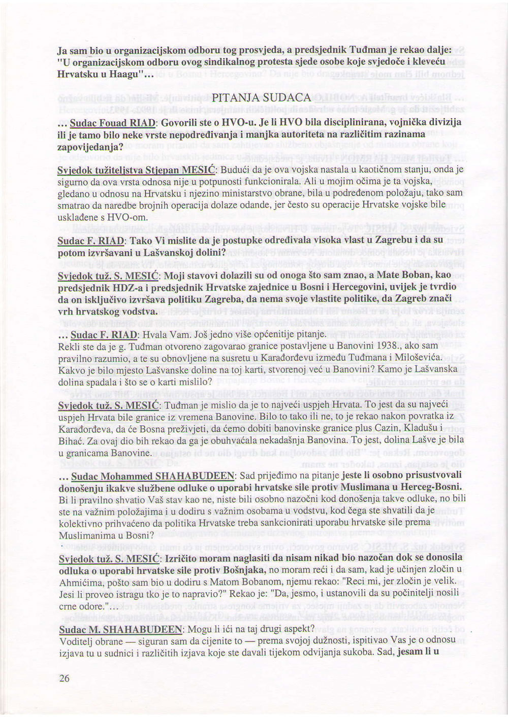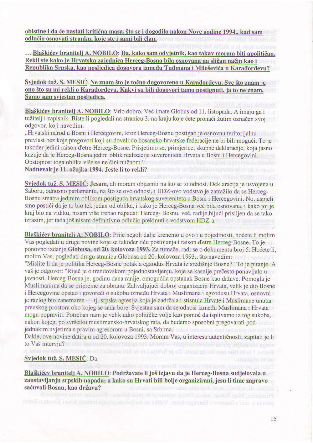 U nastavku donosimo transkript u kojemu Mesić tereti cijeli državni vrh Republike Hrvatske, Hrvate u BiH, a rezultat svega toga je bila presuda Herceg Bosni.