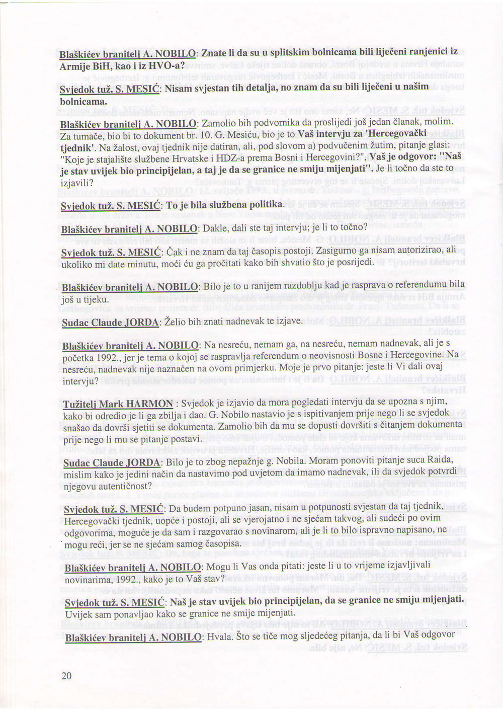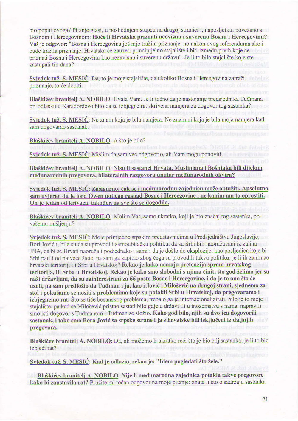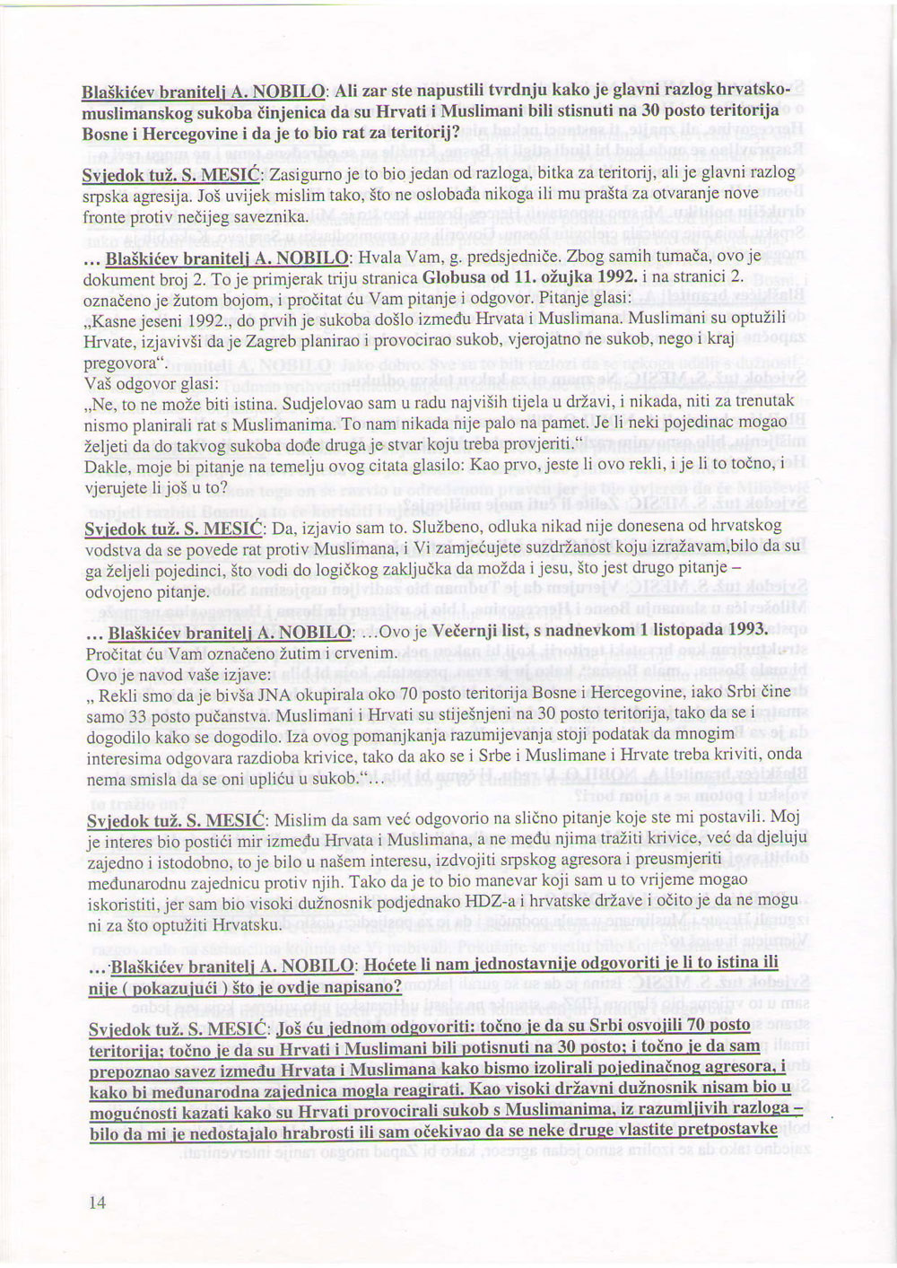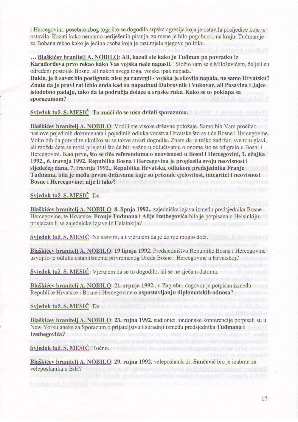 U nastavku donosimo transkript u kojemu Mesić tereti cijeli državni vrh Republike Hrvatske, Hrvate u BiH, a rezultat svega toga je bila presuda Herceg Bosni.