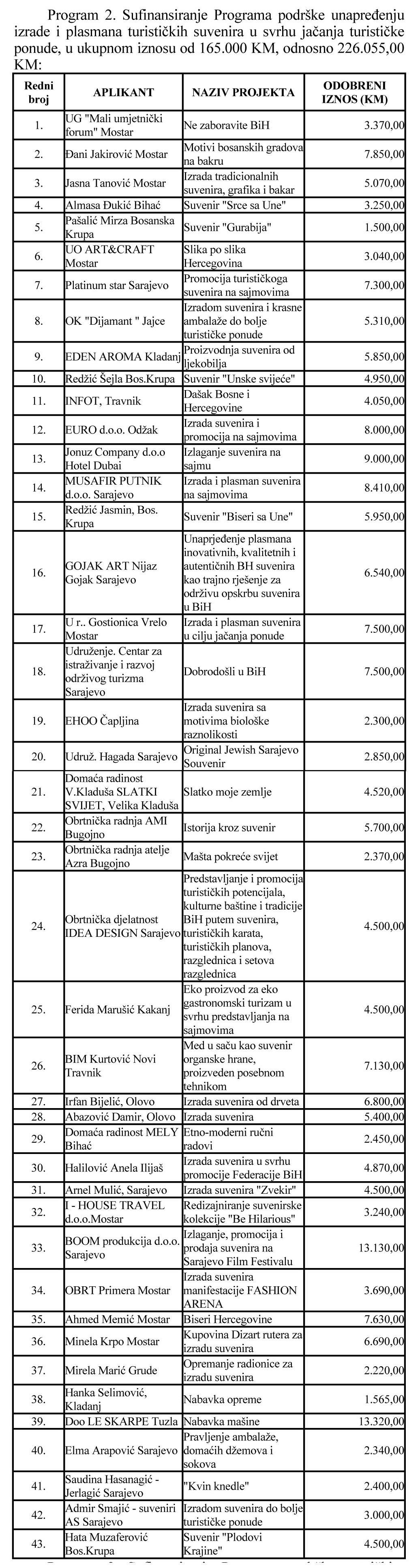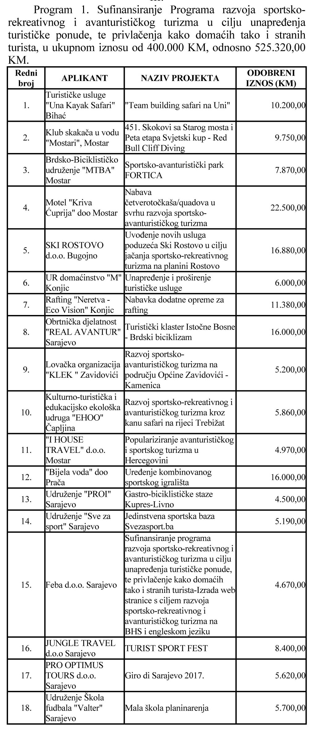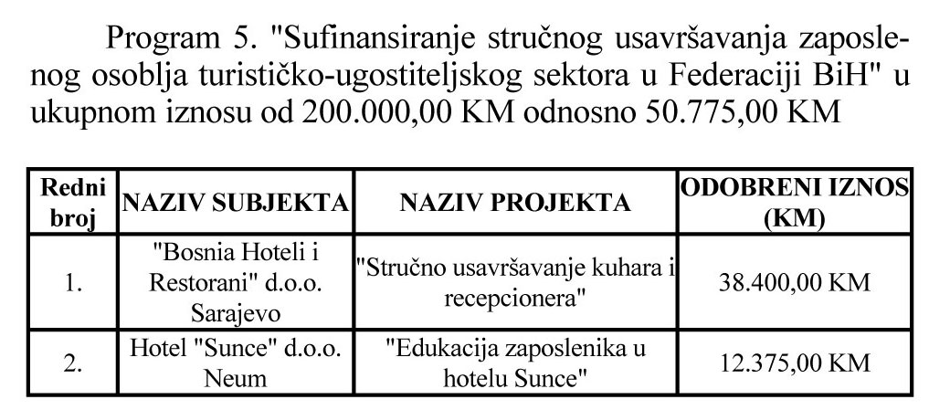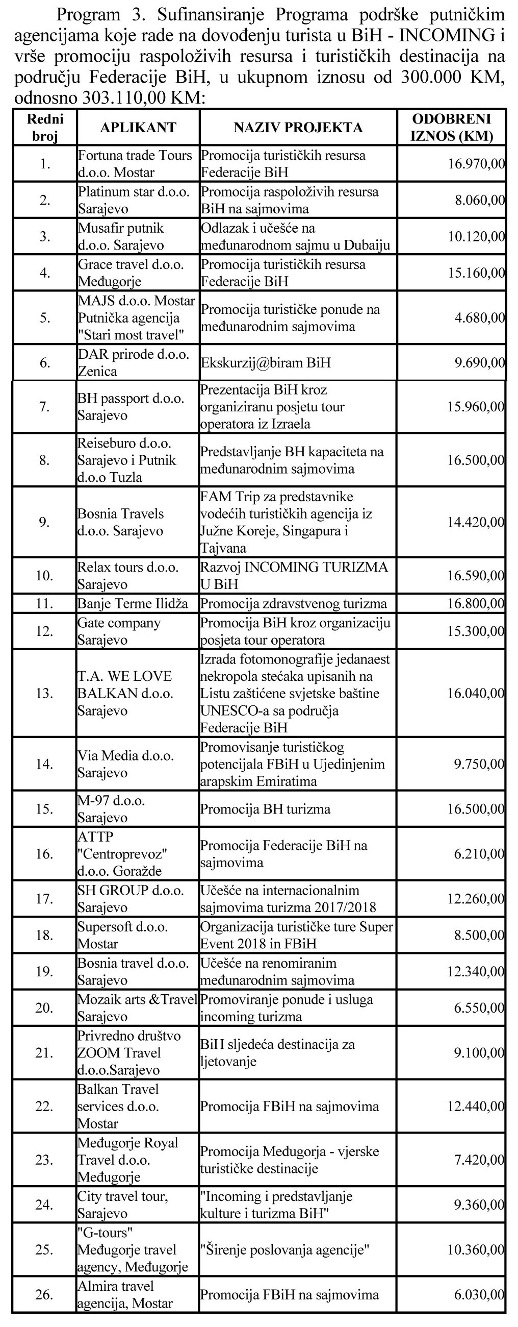 Federalna ministrica okoliša i turizma Edita Đapo donijela je Odluku o izboru korisnika sredstava po programima za odabir korisnika sredstava „Tekući transferi drugim razinama vlasti i fondovima – transfer za razvoj turizma u FBiH“ za 2017. godinu.