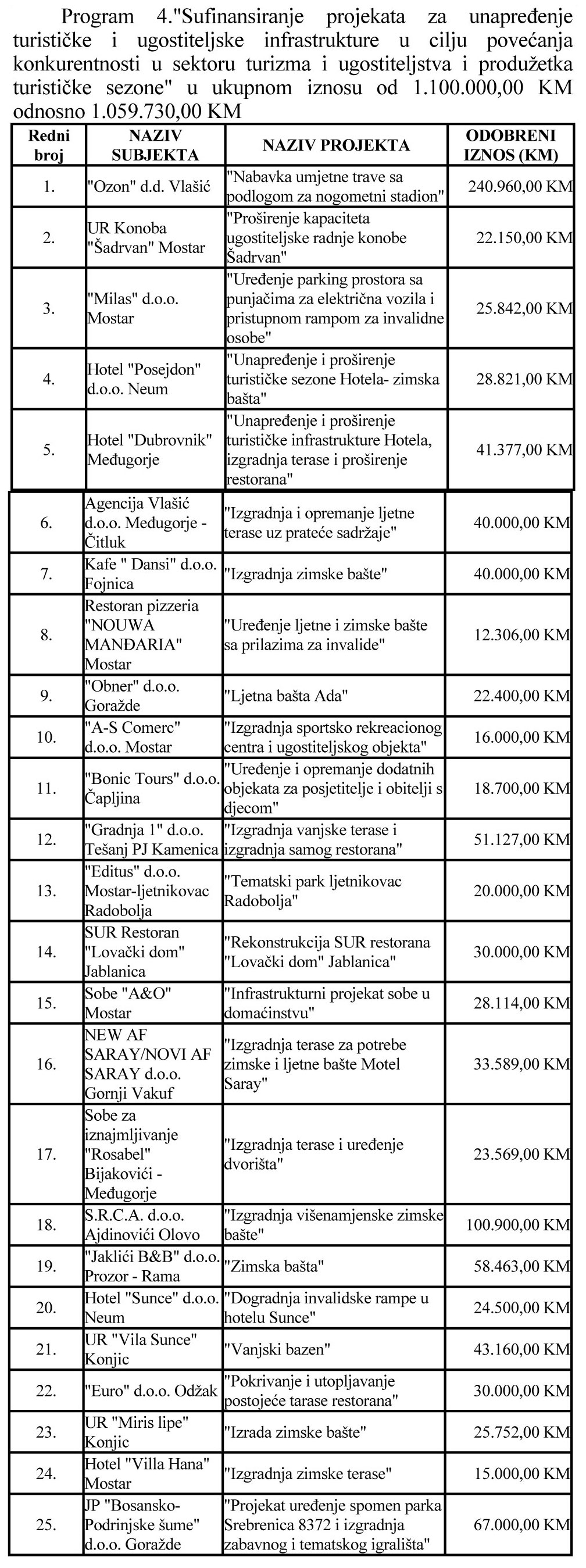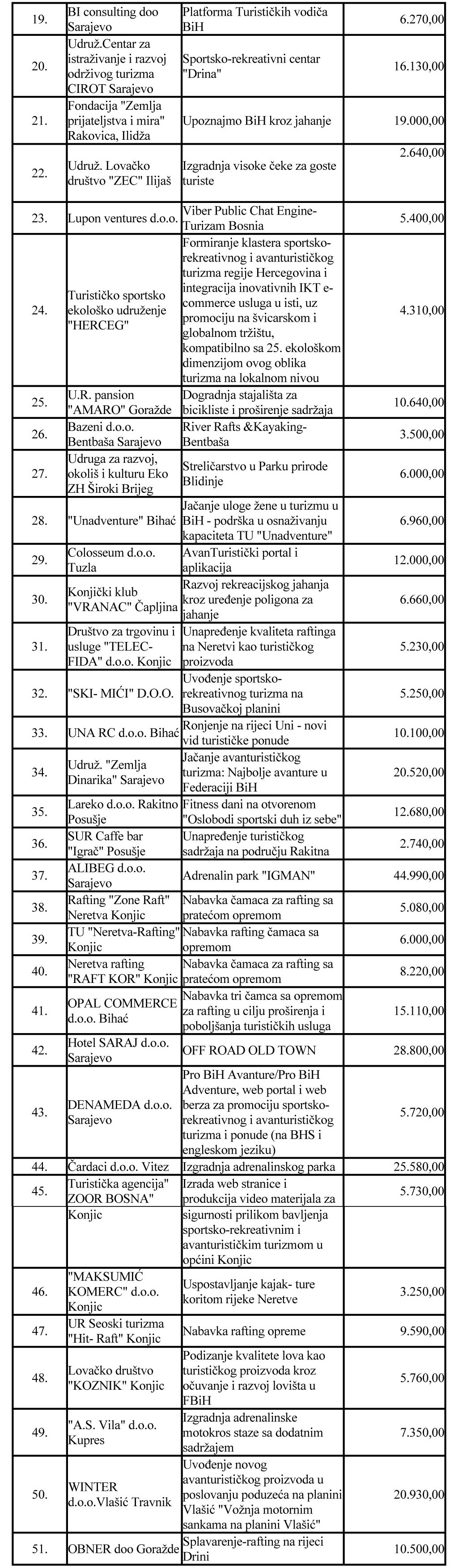 Ispod je popis svih onih koji su ostvarili pravo na sredstva spomenutog ministarstva.