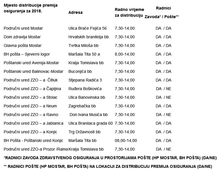 Kako bi se umanjila mogućnost stvaranja gužvi tijekom distribucije Zavod je organizirao 15 punktova na području HNŽ na kojima osiguranici mogu uplatiti i preuzeti premiju osiguranja (markicu) te ovjeriti zdravstvenu iskaznicu.