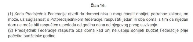 Šef izvršne vlasti u FBiH za odluku o raspuštanju Parlamenta FBiH ne treba tražiti suglasnost potpredsjednika iz reda srpskog i bošnjačkog naroda, odnosna Milana Dunovića (DF) i Melike Mahmutbegović (SDA).