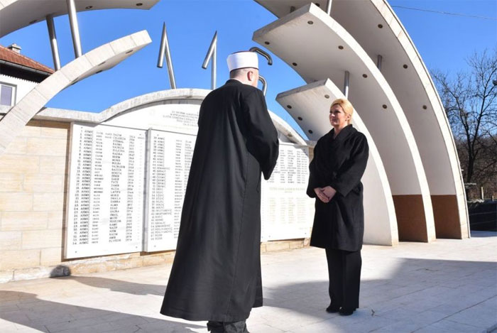 Grabar-Kitarović je također danas posjetila i Križančevo Selo kod Viteza u kojem su 22. i 23. decembra 1993. godine, pripadnici Armije RBiH ubili znatan broj vojnika HVO-a i hrvatskih civila te spalili selo.“