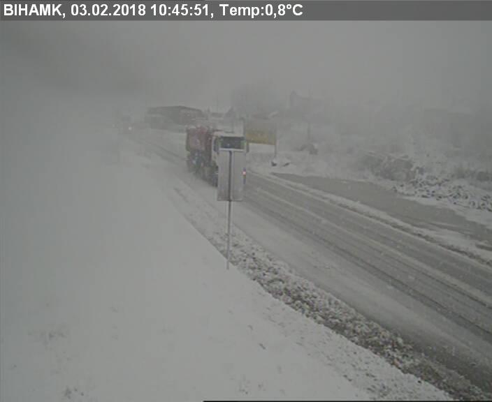 Snijeg je otežao i usporio seprometovanje u zapadnim, sjeverozapadnim i sjevernim dijelovima BiH, naročito na dionicama u višim predjelima, gdje je za teretna vozila obavezna upotreba lanaca.