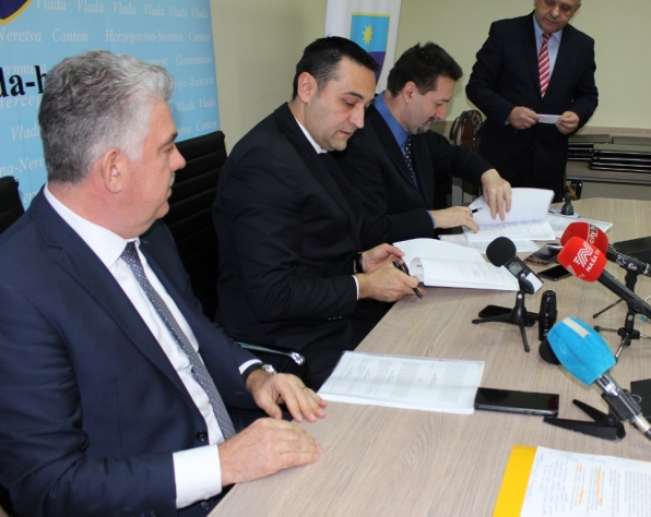Dr. sc. Rašid Hadžović, ministar prosvjete, znanosti, kulture i športa Hercegovačko-neretvanske županije, u nazočnosti dr. sc. Nevenka Hercega, predsjednika Vlade, jučer je s Edinom Čomić, predsjednicom Sindikata srednjeg i visokog obrazovanja HNŽ i Josipom Milićem, predsjednikom Sindikata srednjih škola HNŽ potpisao Kolektivni ugovor za djelatnost srednjoškolskog odgoja i obrazovanja na području HNŽ.