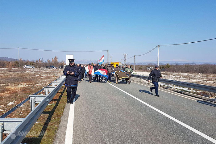 Pripadnici udruge “Zaboravljeni branitelji” iz Hercegovine blokirali su u srijedu ujutro pristupnu cestu koja vodi prema autocesti s koje se ide na granični prijelaz Bijača u blizini Ljubuškog. Kako nam je javio fotoreporter s mjesta događaja, policija ne dozvoljava blokadu autoceste i samog graničnog prijelaza Bijača.