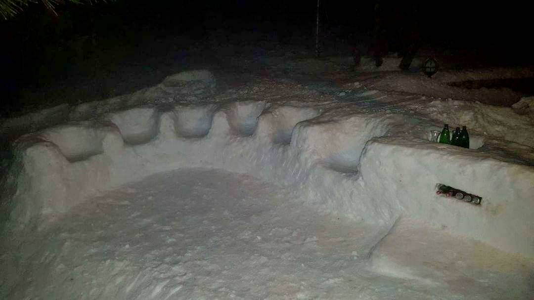 Napravili su dnevni boravak na otvorenome s grijanjem, foteljama, glazbom ali i prirodnim hladnjakom za piće. Što reći nego odličan način za zimsku razbibrigu.