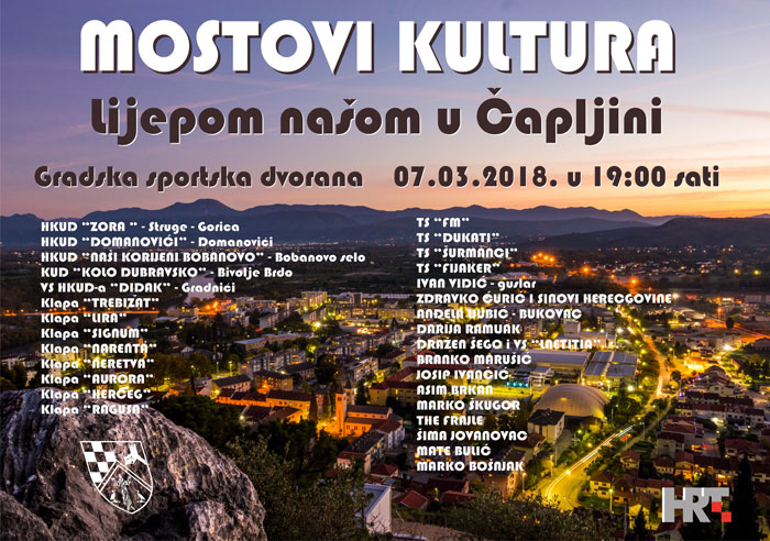 Kao što smo već i najavljivali Čapljina će biti domaćin javnog snimanja glazbeno-scenskog spektakla HRT-ove emisije „Lijepom našom“ – Mostovi kultura.