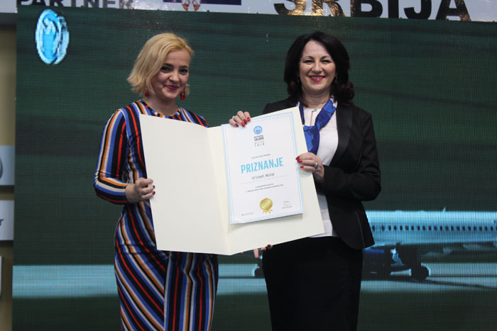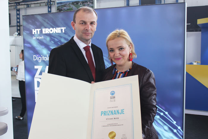 Priznanje za najuspješniji nastup na Međunarodnom sajmu gospodarstva Mostar 2018. rukovoditeljici Korporativnih komunikacija HT ERONET-a Misijani Brkić-Milinković HT ERONET-a uručila je direktorica sajma Dalfina Bošnjak, na svečanosti upriličenoj na središnjoj sajamskoj pozornici.