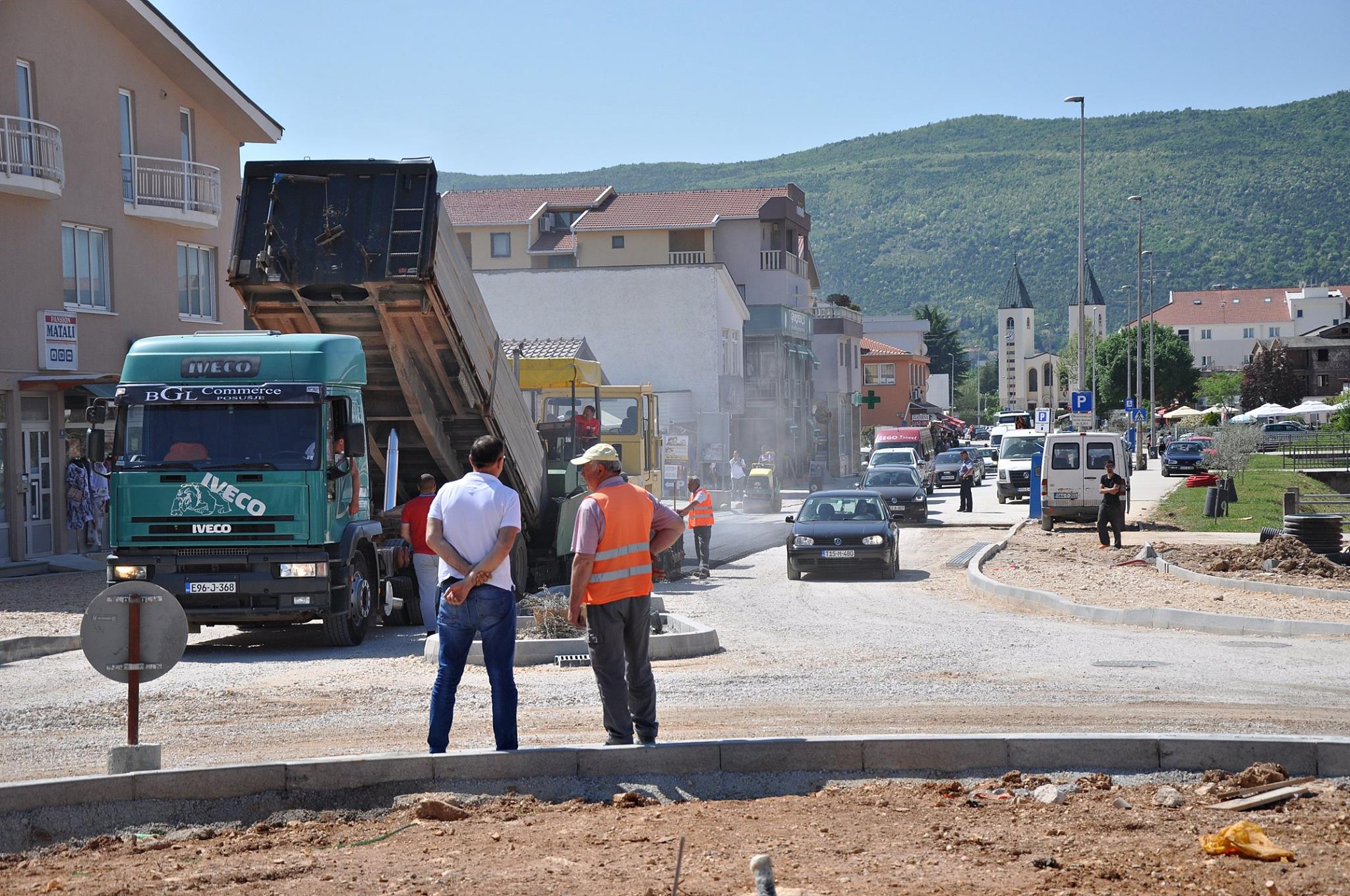 Počelo je postavljanje prvog sloja asfalta na kružnom toku u Međugorju.