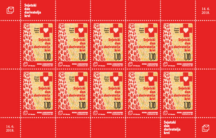 Hrvatska pošta (HP) Mostar tiskala je prigodnu poštansku marku u povodu „Svjetskoga dana darivatelja krvi“