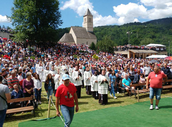 Na početku, okupljenim svećenicima i vjernicima obratio se podmilački župnik i upravitelj svetišta fra Filip Karadža koji je sve pozdravio i zaželio dobrodošlicu.