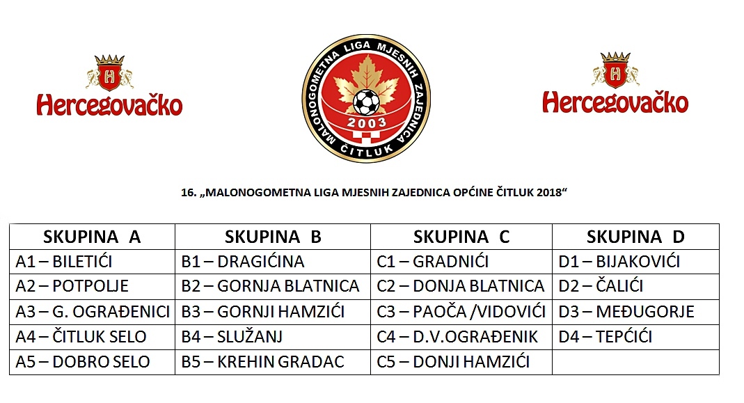 Devetnaest ekipa sudionica ovogodišnje lige podijeljeno je u četiri skupine, a početak MNL MZ općine Čitluk najavljen je za 9. srpnja.