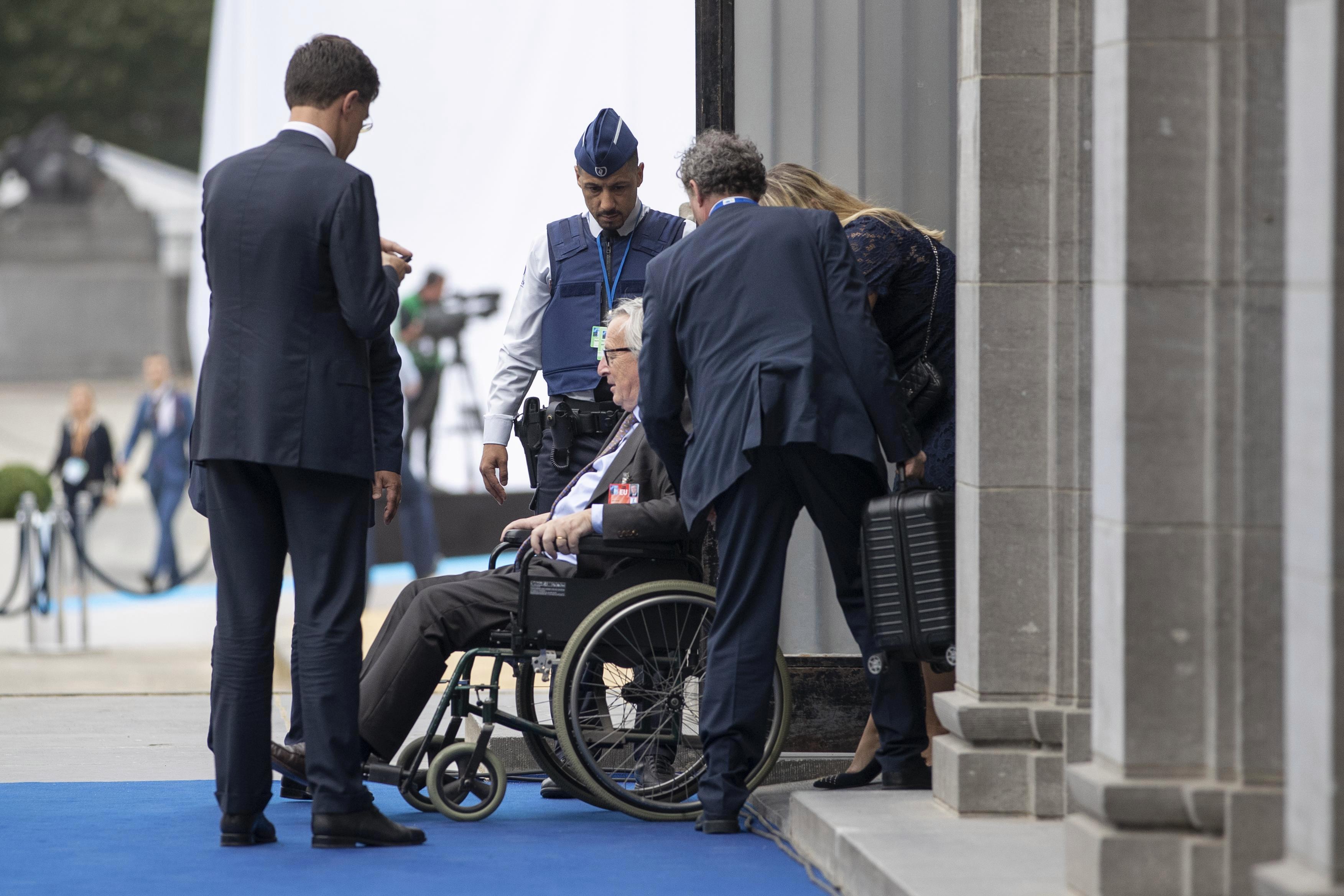 Tako su mu pri hodanju, ali i stajanju, pomagali kolege iz drugih zemalja. Pridržavali su ga predsjednik Finske Sauli Niinisto i predsjednik Ukrajine Petro Porošenko. Kako ne bi pao, Junckera je pridržavao i premijer Nizozemske Mark Rutte, no američki predsjednik Donald Trump nije osjetio potrebu pomoći pa je samo prošao, vidi se na snimci.